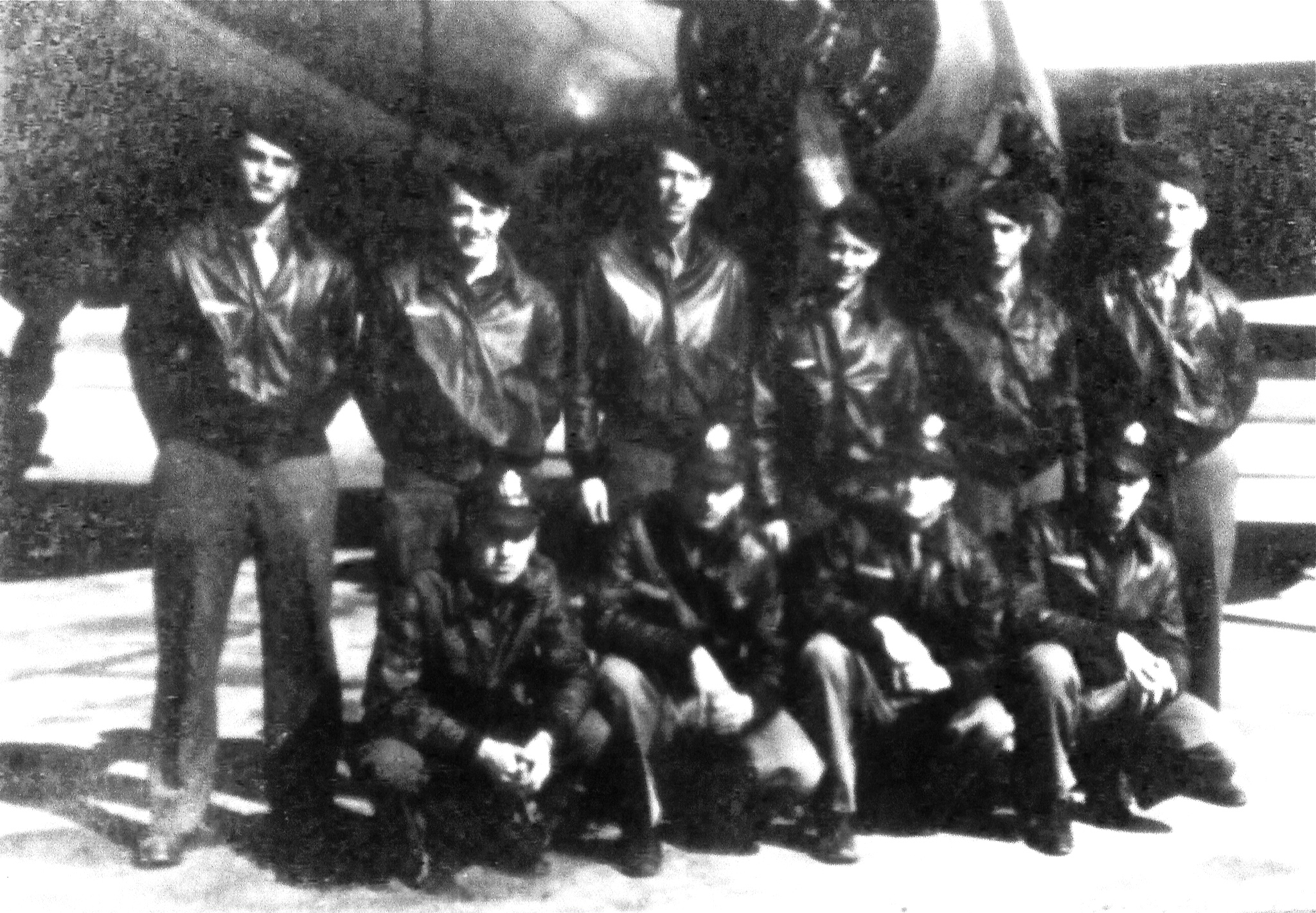 Photo: Pilot Raymond Stephenson (kneeling far right) and Co-pilot Joe Ward (kneeling second from right).